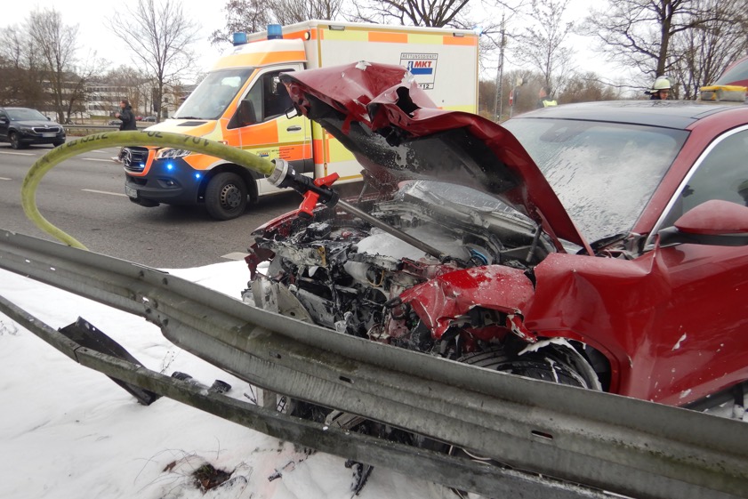 Auch der Fiat-Lenker sei zur weiteren medizinischen Versorgung in ein Krankenhaus gebracht worden. Zur genauen Klärung des Unfall-Hergangs sei von der Staatsanwaltschaft die Erstellung eines Gutachtens in Auftrag gegeben worden. Außerdem seien die Sicherstellung des Alfa-Romeo sowie die Durchführung einer Blutentnahme bei dem 87-Jährigen angeordnet worden. Der bei dem Unfall entstandene Sachschaden wurde von Streifenbeamten auf insgesamt 85 000 Euro geschätzt. Neben den beteiligten Autos sei noch ein weiterer Pkw durch herumfliegenden Teile ramponiert worden. "Auch an dem Verkehrsschild, dem Ampel-Schaltkasten und der Leitplanke entstand massiver Sachschaden", so die Polizei.