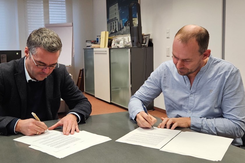Andreas Widmann (rechts) bei der Vertrags-Unterzeichnung mit Bürgermeister Thomas Herker. (Foto: Stadt Pfaffenhofen)
