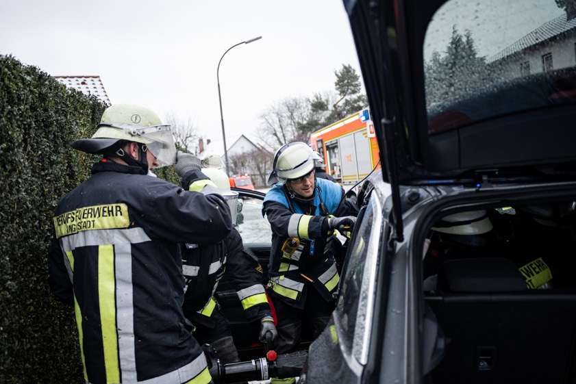 "Der ältere Fahrer klagte über starke Schmerzen im Brust- sowie im Wirbelsäulen-Bereich", erklärt die Berufsfeuerwehr. "Aufgrund dieser Symptome entschieden der Einsatz-Leiter der Feuerwehr und der Notarzt gemeinsam, eine möglichst schonende Rettung des Patienten durchzuführen." Hierzu seien die Türen auf der Fahrerseite mit Hilfe der Rettungs-Schere entfernt und die B-Säule herausgetrennt worden. Durch die so entstandene, große Seitenöffnung habe der Verletzte mit einem Rettungsbrett schonend aus dem Wagen gehoben werden können. Neben der Berufsfeuerwehr waren die Floriansjünger aus Ringsee, Unsernherrn und Rothenturm im Einsatz.