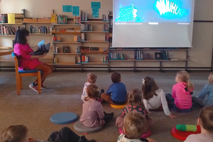 (ty) Anlässlich des bundesweiten Vorlese-Tages haben drei Gruppen von der Kita "St. Johannes" aus Pfaffenhofen die Stadtbücherei besucht und sich von "Bilderbuch-Geschichten" im Großformat begeistern lassen. Die ehrenamtlichen Vorleserinnen hatten eine bunte Auswahl an Büchern zusammengestellt: Geschichten über die allseits bekannte Angst im Dunkeln, über einen kleinen mutigen Ritter und seinen Drachen sowie über einen Fisch, der eigentlich nur einen Brief zur Post bringen wollte und am Ende selbst einmal um die halbe Welt gereist ist.