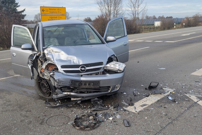 (ty) Zwei Verletzte, darunter ein Kind, und zwei demolierte Autos – das ist die Bilanz eines heftigen Verkehrsunfalls, der sich am gestrigen Nachmittag im Gemeinde-Gebiet von Reichertshofen ereignet hat. Gescheppert hat es gegen 14.10 Uhr auf der B13 wegen einer Vorfahrts-Missachtung. Wie die Polizei heute berichtet, war ein 18-Jähriger mit seinem Pkw auf der Bundesstraße – von Ingolstadt her kommend – in Richtung Reichertshofen unterwegs und wollte dann nach links auf die Staatsstraße 2049 abbiegen. Dabei kam es zur Kollision mit dem entgegenkommenden Wagen einer 54-Jährigen.
