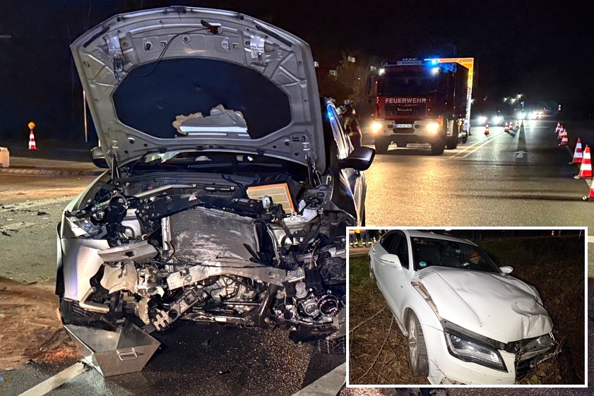 Sowohl der 31-Jährige als auch alle drei Leute in dem anderen Wagen seien jeweils leicht verletzt worden, meldet die Polizei. Die 23-Jährige und eine weitere Person, die sich in ihrem Auto befunden hatte, seien vom Rettungsdienst zu weiteren Untersuchungen in eine Klinik gebracht worden. Dem 31-Jährigen droht jetzt eine Strafanzeige wegen fahrlässiger Körperverletzung. Die beiden Auto seien erheblich demoliert worden und auch nicht mehr fahrbereit gewesen. Streifenbeamten schätzten den Sachschaden auf insgesamt 35 000 Euro.