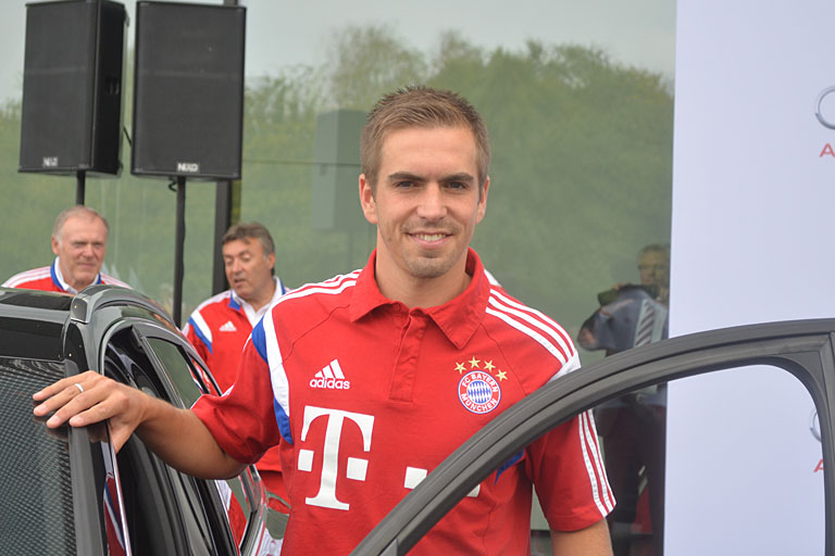 Lahm hat bei der Wahl seines Autos die Geschwindigkeit nicht als oberstes Kriterium ausgegeben. „Mir ist wichtig, dass meine ganze Familie schön Platz hat und dass ich ein Golfbag in den Kofferraum bekomme“, sagte er. „Ich hab das gleiche Auto wie letztes Jahr. Eigentlich hätte ich auch gleich das alte behalten können“, meint er lachend. Aber neue Saison, neues Sponsoren-Auto. Und neue Saison, neue Titelhoffnungen. Gestern haben die Bayern ja mit dem Auftakt-Erfolg gegen den VfL Wolfsburg schon die ersten drei Punkte eingefahren. Aber die Fans wollten nun freilich noch viele weitere Tore und Siege bejubeln – und am besten auch wieder den einen oder anderen Titel feiern.