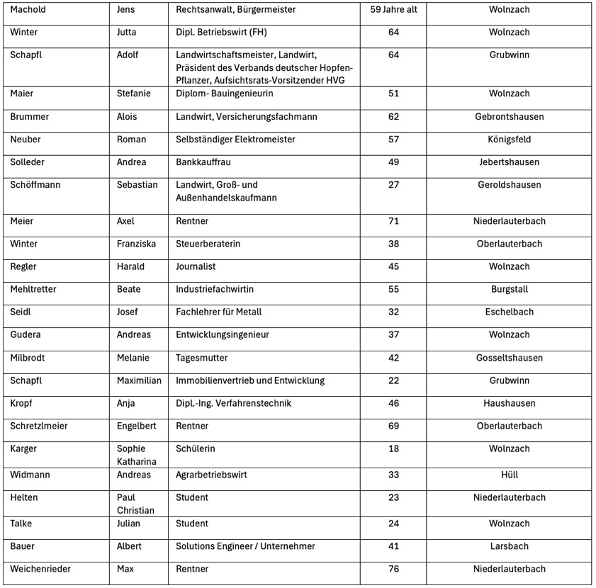 Die Gemeinderats-Liste der CSU für Wolnzach: