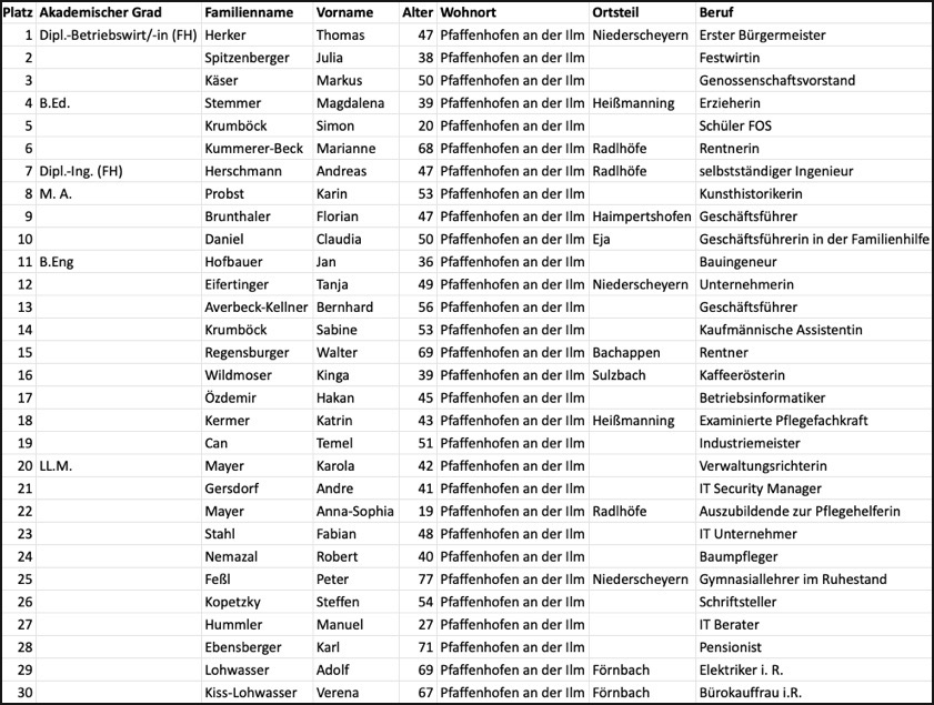 Die Stadtrats-Liste der SPD in Pfaffenhofen: