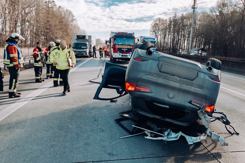 "Im Anschluss überschlug sich der Pkw und landete auf dem Dach im zwischen dem rechten und mittleren Fahrstreifen", so die Polizei. Der BMW-Lenker habe durch den Unfall lebensbedrohliche Verletzungen erlitten. Er sei per Rettungs-Hubschrauber in ein Klinikum gebracht worden. Der Mann befinde sich weiterhin in einem kritischen Zustand, wurde gegen 16 Uhr gemeldet. "Laut Ärzten ist ein Ableben des Fahrers weiterhin nicht ausgeschlossen." Die 31-jährige Beifahrerin sei nach der Erstversorgung durch einen Notarzt ebenfalls zur weiteren Behandlung in ein Krankenhaus gebracht worden.