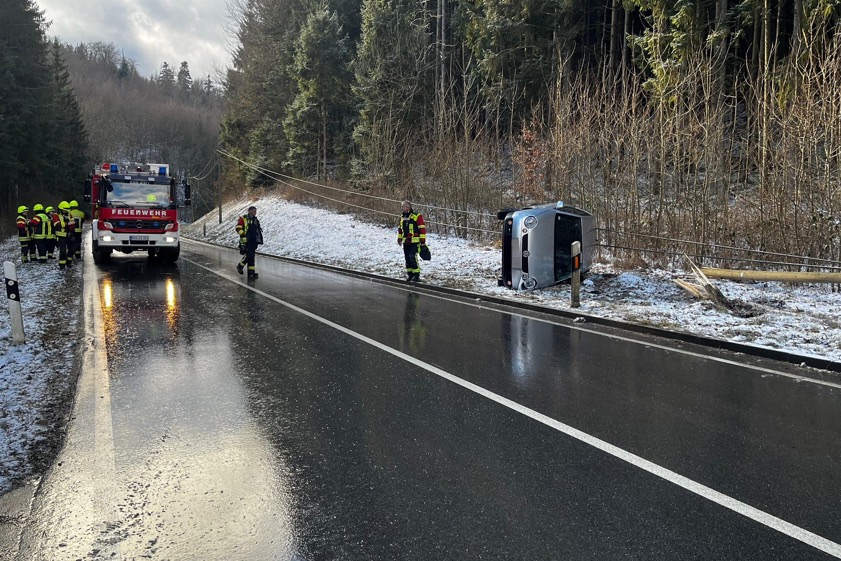 24-Jähriger verlor gestern, vermutlich wegen Glätte, auf der KEH5 die Kontrolle über sein Auto. Der Wagen kollidierte mit einem Telefon-Masten.