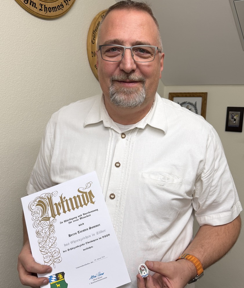 Torsten Sommer bekam die "Silberne Gams“ des Schützen-Bezirks Oberbayern.