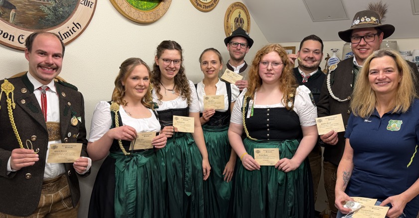 Isabella Daniel erhielt als ausscheidende Vereinskönigin das Königs-Abzeichen 2025. Nathanael Buhs, Patrick Kolbe, Michael Leopold, Ludwig Roßner, Johannes Schuster, Peter Selles, Anna Stichlmair sowie Alexander Stöger wurden für zehnjährige Mitgliedschaft beim bayerischen Sportschützenbund (BSSB) ausgezeichnet.