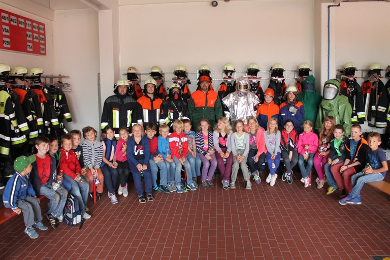 Zum Schluss wurden den interessierten Kindern bei einer „Modenschau“ noch die verschiedenen Einsatzkleidungen der Feuerwehr vorgestellt und erläutert. Und anhand eines anschaulichen Beispiels wurde den Kindern gezeigt, welche verheerenden Folgen ein Löschversuch mit Wasser bei einem Fettbrand haben kann: Die meterhohe Stichflamme bleibt den Buben und Mädchen sicher noch lange in Erinnerung.