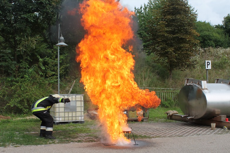 Im Rahmen des Wolnzacher Ferienprogramms besuchten 24 Kinder die Feuerwehr – und erlebten dabei auch, was passieren kann, wenn man einen Fettbrand mit Wasser löschen will