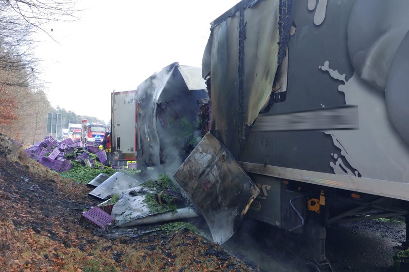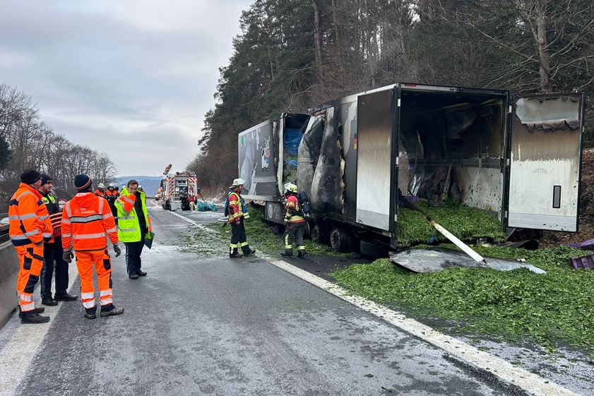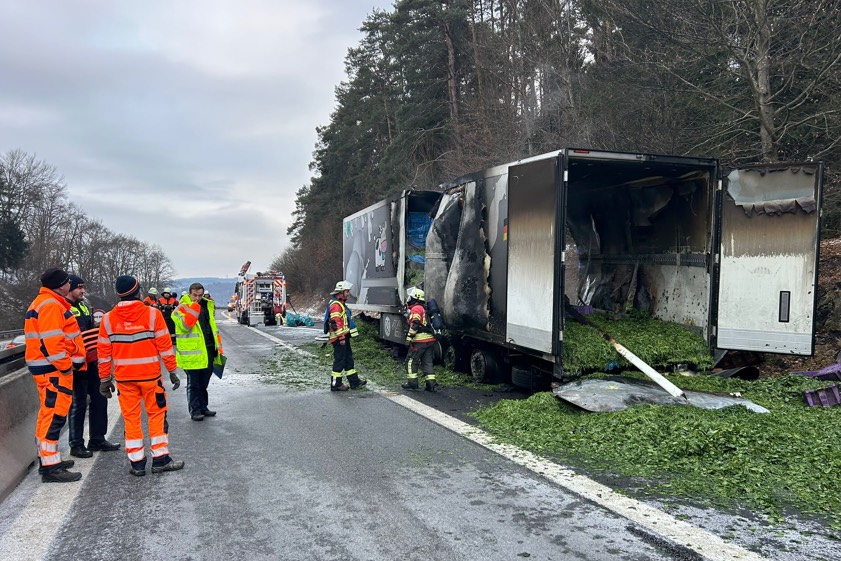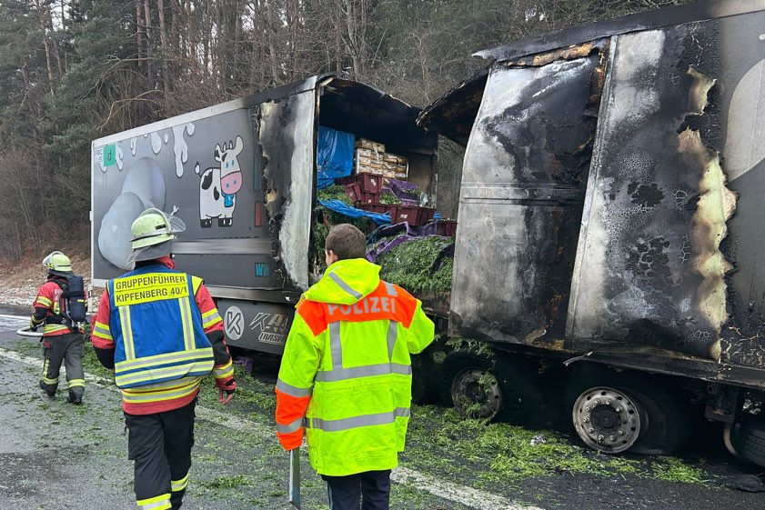 Von der Autobahn-Meisterei sei eine Fachfirma mit der Bergung des Aufliegers sowie der Reinigung der Fahrbahn beauftragt worden. "Weiterführende Ermittlungen zur Brand-Ursache stehen aufgrund der laufenden Bergungs-Arbeiten derzeit noch aus", wurde gegen 15.50 Uhr gemeldet. Die Höhe des insgesamt entstandenen Sachschadens könne momentan noch nicht beziffert werden, "da Beschädigungen der Fahrbahn-Decke nicht ausgeschlossen werden können". An dem Auflieger stehe ein Totalschaden zu Buche; angesiedelt wurde dieser in einer Größenordnung von von 30 000 Euro.