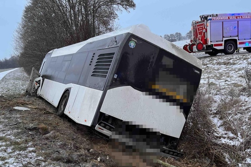 Ohne Fremdbeteiligung sei der Bus nach links von der Strecke abgekommen. Der Fahrer habe leichte Verletzungen erlitten; er sei vom alarmierten Rettungsdienst zur weiteren Abklärung in ein Krankenhaus gebracht worden. Der entstandene Sachschaden wurde von Streifenbeamten im unteren fünfstelligen Euro-Bereich angesiedelt. Im Einsatz waren auch die Feuerwehren aus Kelheim, Saal und Reißing.