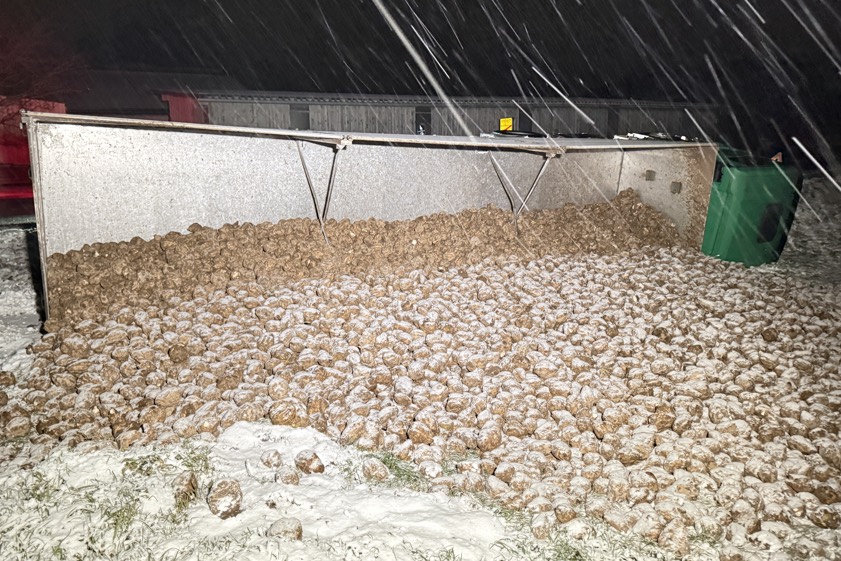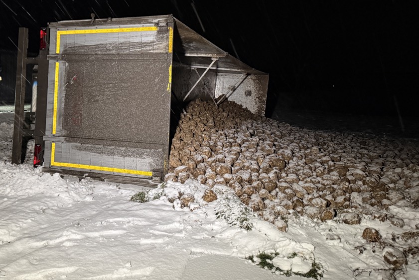 Das komplette Gespann kippte zur Seite um. Der Fahrer habe leichte Verletzungen erlitten; er sei vom alarmierten Rettungsdienst in ein Krankenhaus gebracht worden, so die Polizei. Erst im Laufe des heutigen Tages sollte der mit Zuckerrüben beladene Laster vollständig entladen sowie geborgen werden. Nach ersten Einschätzungen der Polizei wurde der entstandene Sachschaden im niedrigen fünfstelligen Euro-Bereich angesiedelt.