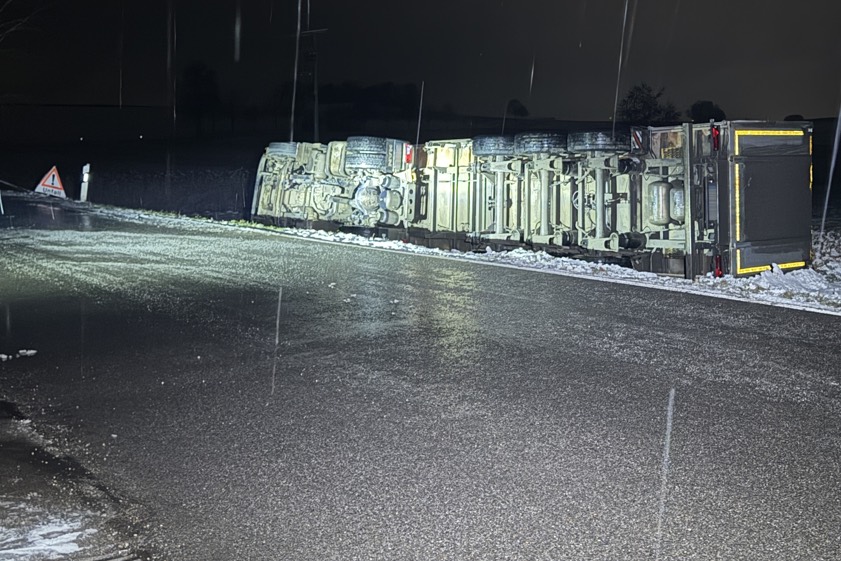 (ty) Ein schwerer Lastwagen-Unfall hat sich am gestrigen Abend im Gemeinde-Gebiet von Petersdorf im Landkreis Aichach-Friedberg ereignet. Das Unglück geschah gegen 20.30 Uhr im Bereich des Ortsteils Appertshausen. Wie die Polizei heute berichtet, war ein 73-Jähriger mit dem beladenen Lkw-Gespann in Richtung Aindling unterwegs, als er in einer langgezogenen Links-Kurve nach rechts von der Strecke abkam. Damit nahm das Unheil seinen Lauf.