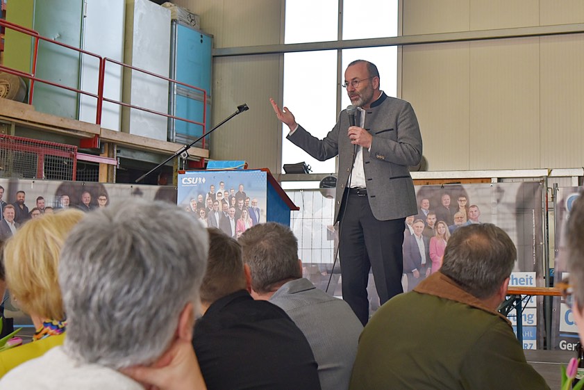 (ty) Der CSU-Ortsverband von Geisenfeld hat am Sonntag sein 80-jähriges Bestehen mit einem festlichen Neujahrs-Empfang in der Halle der Gerüstbau-Firma Lachermeier gefeiert. Mehr als 200 Gäste waren der Einladung gefolgt. Zum Auftakt gab es einen Sekt-Empfang, umrahmt von den "Hohenwarter Musebuam". Ein Höhepunkt war die Rede des prominenten Europa-Abgeordneten Manfred Weber aus dem Landkreis Kelheim; er ist Vorsitzender der EVP und auch deren Fraktions-Vorsitzender im europäischen Parlament.