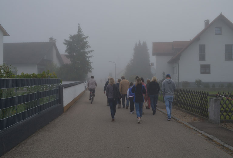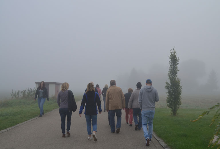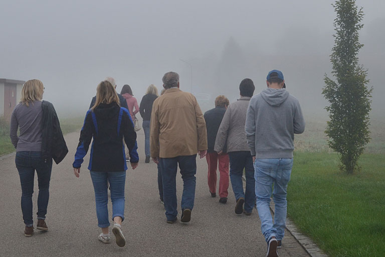 Man sieht kaum etwas doch die Karlskroner kämpfen sich schon um kurz nach sieben Uhr tapfer durch den Nebel.