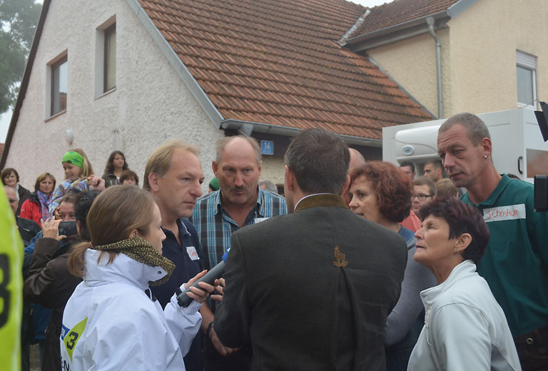 Viele waren bereits in den frühen Morgenstunden aus ihrem Bett gekrochen und auch Bürgermeister Stefan Kumpf fiel sehr früh aus den Federn, um die Karlskroner um Punkt Sieben Uhr zu wecken: Er fuhr auf einem Feuerwehrfahrzeug durch die Gemeinde und rief „Auuuufwaacheeeeen“ ins Megaphon. Schließlich ist für Karlskron heute der Tag der Tage. Der Tag, an dem sich entscheiden soll, ob die Gemeinde ins Finale einzieht im Kampf um das Bayern3-Dorffest.