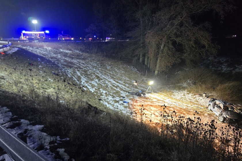 Wie die Polizeiinspektion aus Mainburg berichtet, war der 22 Jahre alte Deutsche aus dem Landkreis Landshut mit dem Pkw auf der Autobahn A93 – von Regensburg her kommend – in Richtung des Autobahn-Dreiecks Holledau unterwegs. Als Beifahrer habe sich der 20 Jahre alte Deutsche aus dem Landkreis Rottal-Inn mit in dem Wagen befunden. An der Anschlussstelle bei Saalhaupt habe der 22-Jährige dann die Auffahrt zur Bundesstraße B15n in Richtung Landshut befahren. Dabei sei das Auto aus bislang nicht bekannter Ursache zunächst von der Strecke geraten und habe sich anschließend überschlagen.