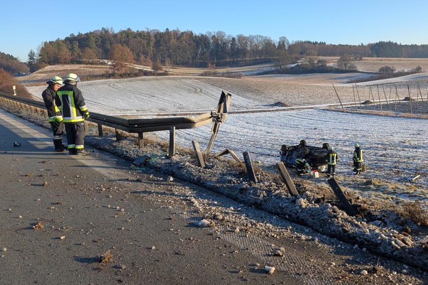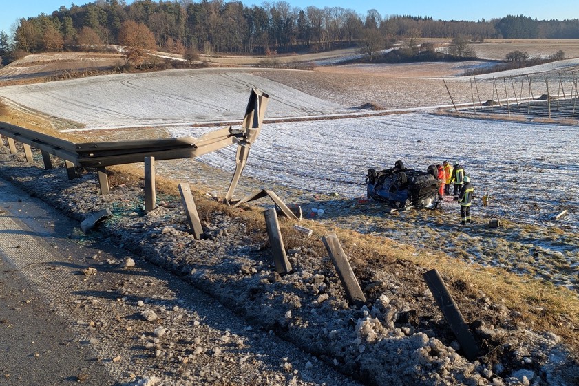 (ty) Ein heftiger und folgenreicher Verkehrsunfall hat sich am gestrigen Vormittag gegen 8.45 Uhr im Gemeinde-Gebiet von Schweitenkirchen auf der A9 in Richtung Nürnberg ereignet. Laut heutiger Mitteilung der Polizei verlor ein 26-Jähriger aus Erfurt die Kontrolle über seinen Pkw und prallte gegen einen VW-Bus, der von einem 42-Jährigen aus Sauerlach gesteuert wurde. Der VW sei daraufhin von der Strecke abgekommen, habe die Leitplanke durchbrochen und sich mehrfach eine 15 Meter tiefe Böschung hinab überschlagen. Der Kleinbus sei dann auf dem Dach zum Liegen gekommen.