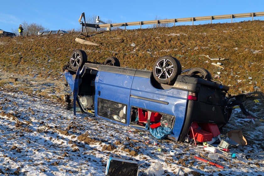 26-Jähriger krachte gestern mit seinem Pkw in einen Kleinbus, der daraufhin die Leitplanke durchbrach und sich mehrfach überschlug.