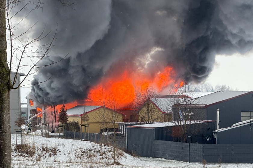 Aktuellerer Beitrag und weitere Fotos vom Lösch-Einsatz: Millionenschaden in Brunnen: Lagerhalle wurde gestern zum Raub der Flammen