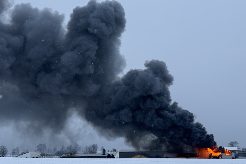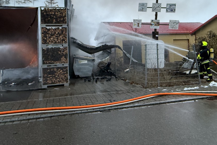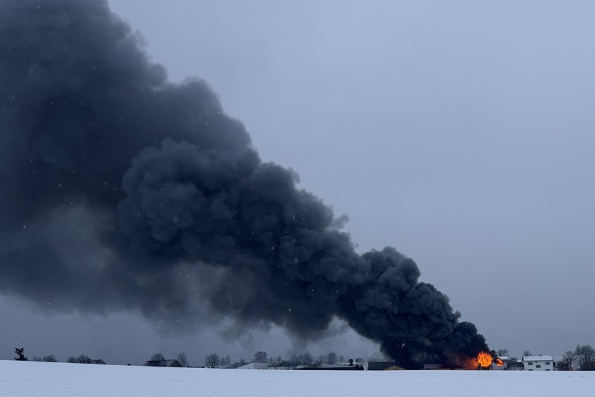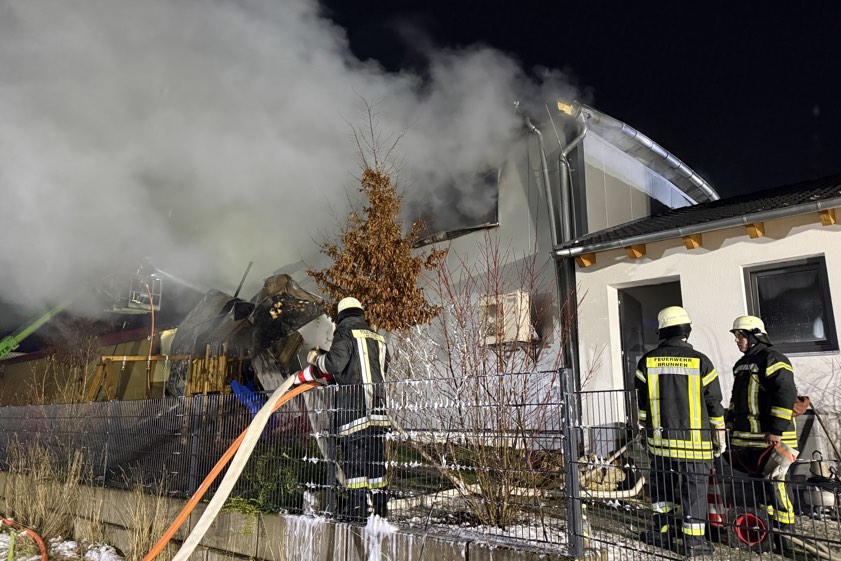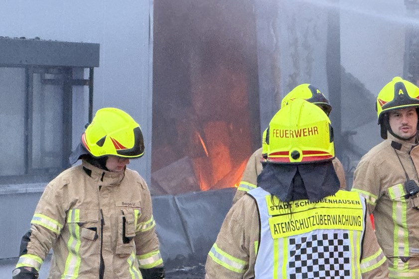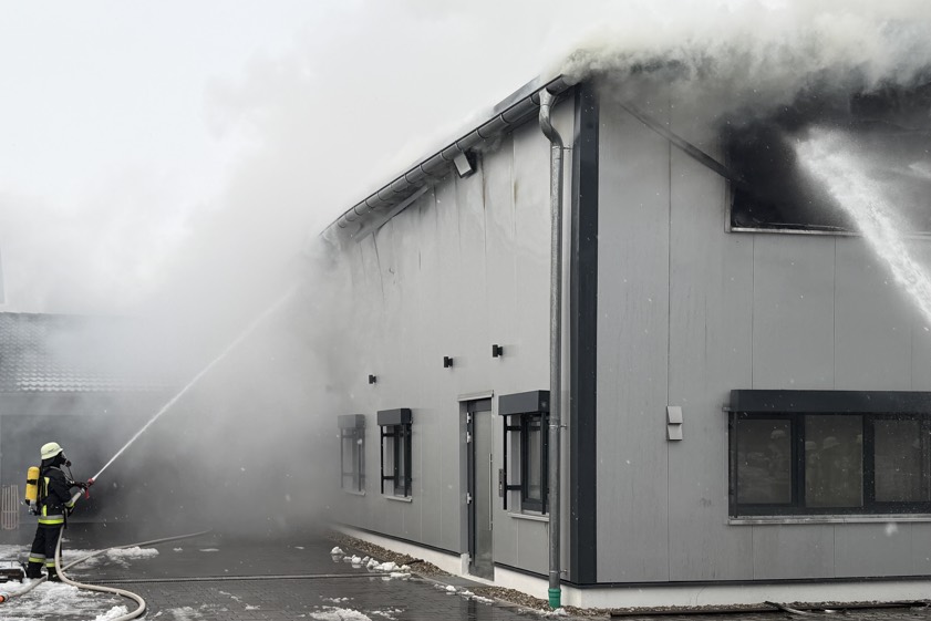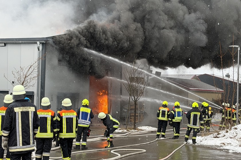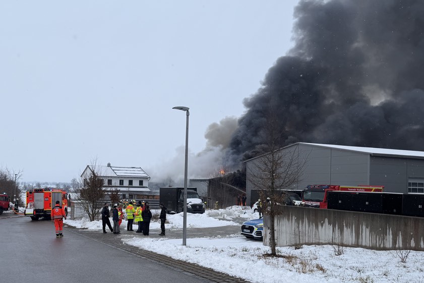 Feuerwehr-Großeinsatz aktuell in Brunnen: Eine Lagerhalle steht in Vollbrand