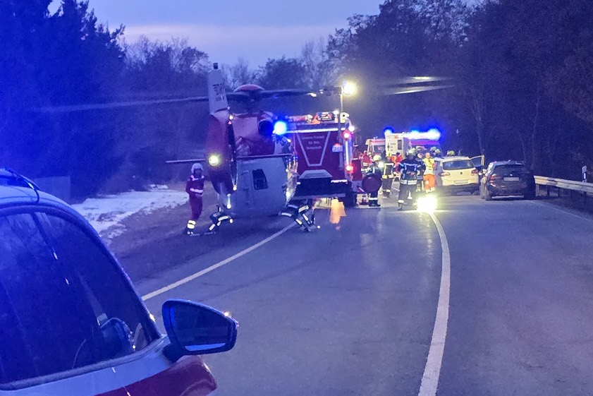 (ty) Insgesamt elf Verletzte, darunter ein Schwerverletzter, hat ein Verkehrsunfall gefordert, der sich am gestrigen Nachmittag gegen 16.45 Uhr auf der B16 im Bereich von Kelheim ereignet hat. Nach Angaben der Polizei war ein 46-jähriger Kroate aus dem Kreis Kelheim mit einem Kleintransporter auf der Bundesstraße in Richtung Ingolstadt unterwegs; mit an Bord befand sich ein 34-jähriger Bosnier aus dem Kreis Kelheim. Aus bislang nicht bekannten Gründen sei der Wagen zwischen den Ausfahrten Saal-Hafen und Kelheim auf die Gegenspur geraten und dort nacheinander mit drei anderen Fahrzeugen kollidiert.