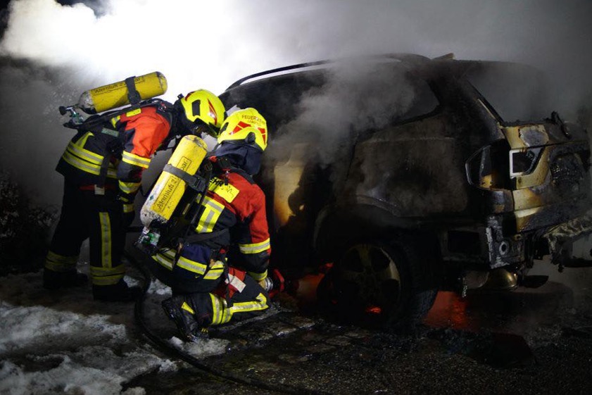 Feuerwehr-Einsatz im Ortsteil Poikam. Polizei vermutet technischen Defekt an dem Auto als Ursache für den Vorfall.