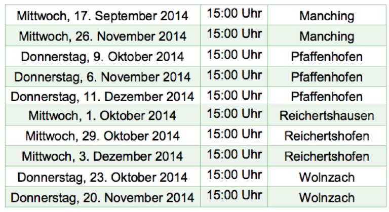 (ty) Die Schwangerenberatungsstelle des Landratsamtes Pfaffenhofen wird im September am Dienstag, 2. September, in der Außenstelle in Vohburg vormittags vor Ort sein. In Manching findet die nächste Außensprechstunde am Donnerstag, 4. September von 9 bis 11 Uhr im Rathaus Manching (Haus des Bürgers) statt. Voranmeldungen oder Rückfragen sind vormittags unter (0 84 41) 79 19 67 oder per E-mail an