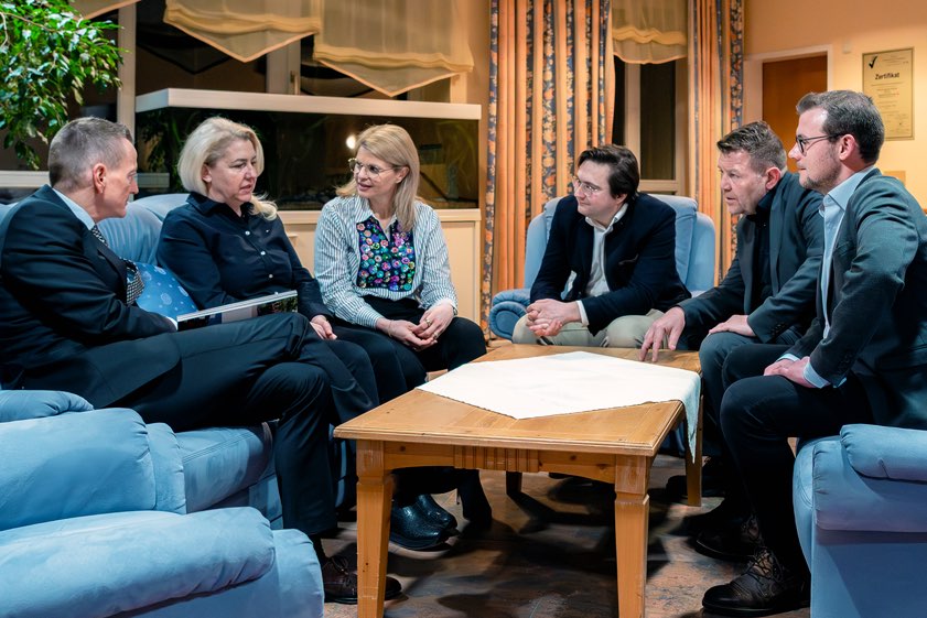 Machold betonte die Bedeutung nachhaltiger Infrastruktur-Maßnahmen. So werde das "Haus der Senioren" als Verteiler-Station an den Biogas-Wärmeverbund angeschlossen und damit Teil eines Fernwärme-Netzes. Darüber hinaus versorge die hauseigene Küche künftig eine Ganztags-Schule sowie einen Kindergarten mit frisch zubereiteten Mahlzeiten. Staffler unterstrich die zentrale Rolle der Kommunen für eine funktionierende Pflege: "Gute Pflege steht und fällt mit der Kommunalpolitik." Der direkte Austausch mit Einrichtungen vor Ort sei unverzichtbar, um zu erkennen, worauf es in der Praxis ankomme. Da Pflege keine Pflichtaufgabe der Kommunen sei, sei es besonders wichtig, Herausforderungen frühzeitig zu erkennen, um spürbare Verbesserungen zu erreichen.