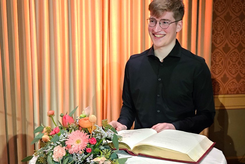 Der 19-jährige Musiker erhielt die mit 1500 Euro dotierte Auszeichnung auf einhelligen Ratsbeschluss hin und trug sich ins "Goldene Buch" ein.