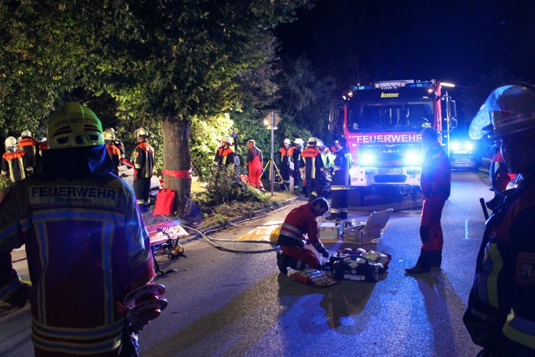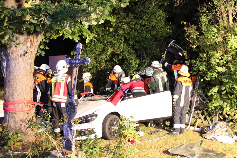 21-Jähriger kracht mit seinem Pkw an der Ortseinfahrt gegen einen Baum – er selbst wurde nur leicht verletzt, seine beiden Mitfahrer schwer beziehungsweise schwerst