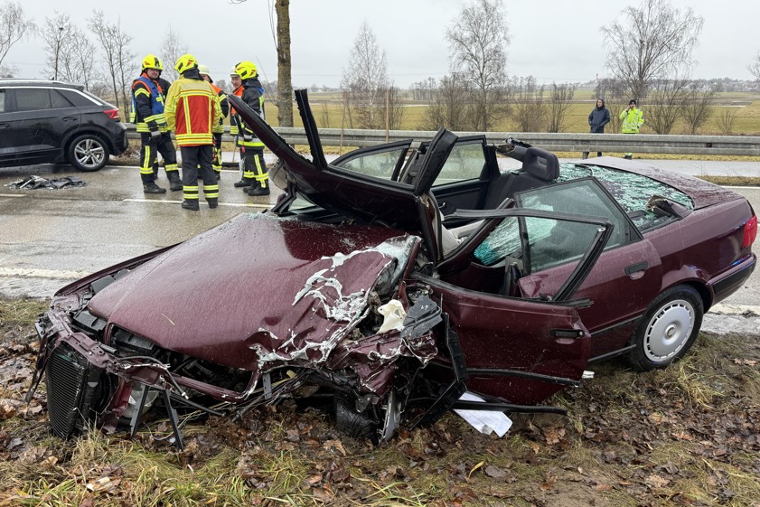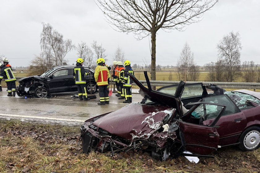 19-Jähriger prallte gegen 14.40 Uhr mit seinem Pkw auf der Staatsstraße 2046 zwischen Edelshausen und Alteneich in den Gegenverkehr.