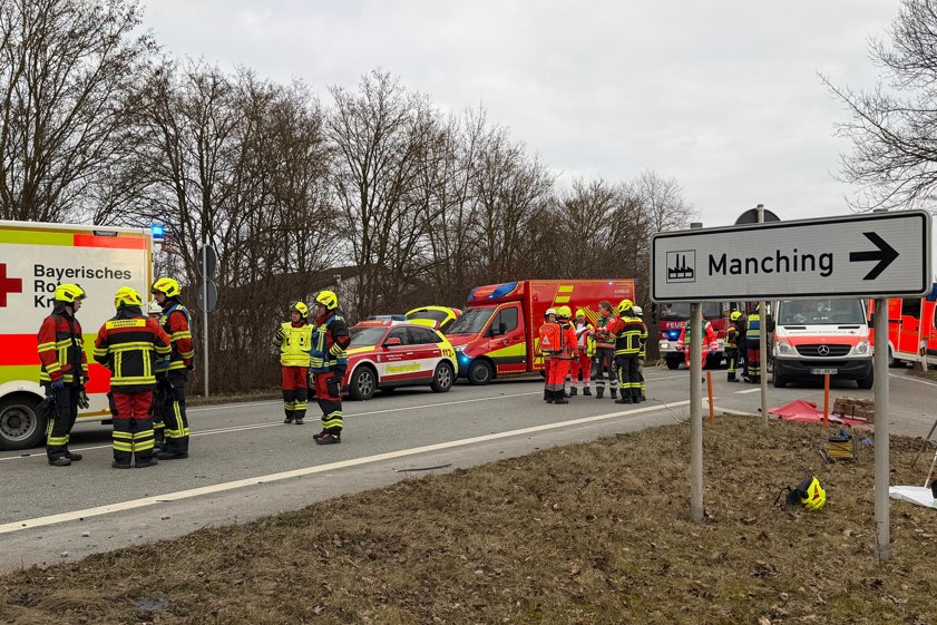 (ty) Insgesamt acht Verletzte, darunter drei Schwerverletzte, hat ein Verkehrsunfall gefordert, der sich am gestrigen Nachmittag wenige Minuten vor 16 Uhr im Gemeinde-Gebiet von Manching ereignet hat. Zwei entgegenkommende Autos krachten auf der B16 frontal zusammen. Wegen der erforderlichen Rettungs- und Reinigungs-Maßnahmen sowie wegen der polizeilichen Unfall-Aufnahme war die Bundesstraße in diesem Bereich für rund zwei Stunden komplett gesperrt.
