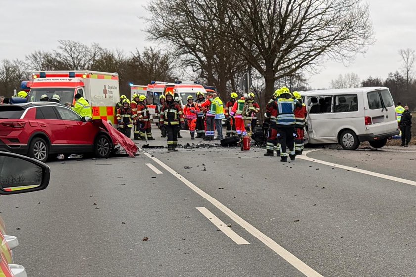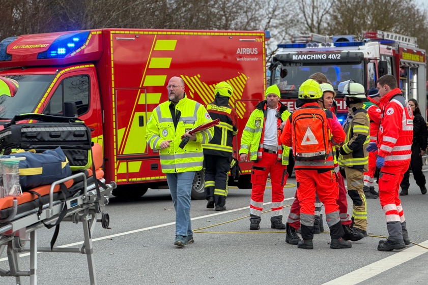 Durch den Zusammenstoß seien alle sieben Kleinbus-Insassen sowie der T-Roc-Lenker verletzt worden. Laut weiterer Mitteilung der Polizei wurden drei Personen jeweils schwer verletzt sowie fünf Personen jeweils leicht verletzt. Ein Großaufgebot von Rettungskräften sei vor Ort gewesen. Alle Verunglückten seien zunächst vor Ort erstversorgt sowie anschließend zur weiteren Behandlung in umliegende Krankenhäuser gebracht worden. Im Einsatz waren auch die Feuerwehren aus Manching, Oberstimm und Pichl.