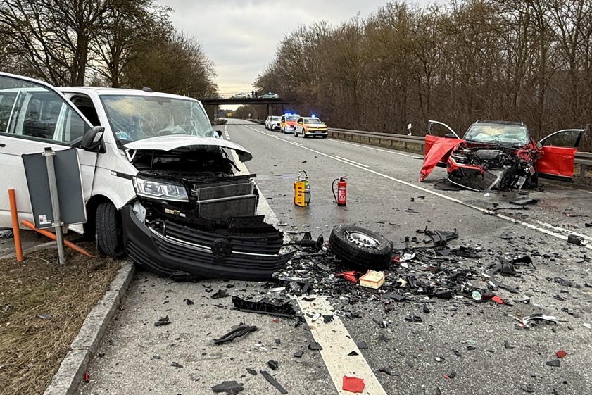 68-Jähriger krachte gestern Nachmittag mit seinem Pkw in einen entgegenkommenden Kleinbus. Bundesstraße zwei Stunden gesperrt.