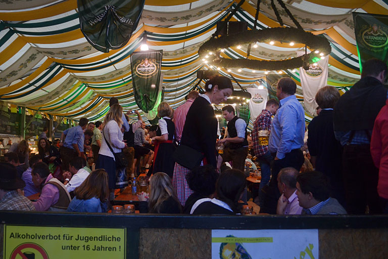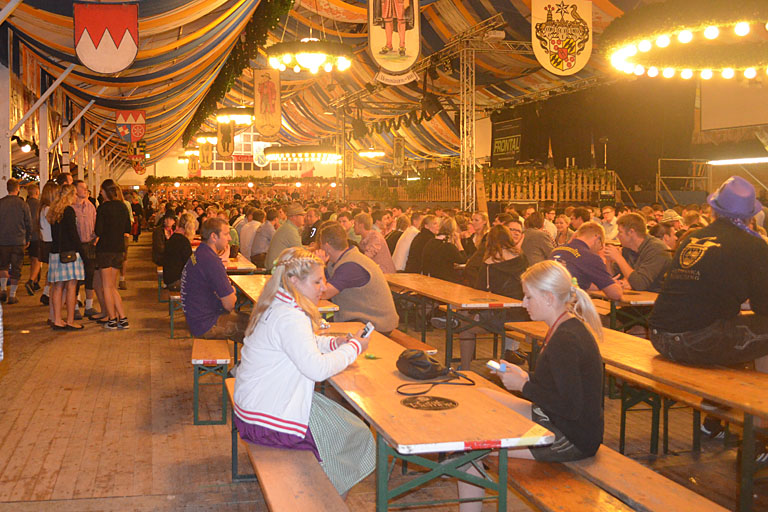 Auch die Zelte füllten sich ab fünf stetig, bis es dann um sechs Uhr offiziell losging. Hunderte Besucher nutzten die Gelegenheit, noch ein letztes Mal auf dieses große Volksfest zu pilgern und den Tag mit einem Weißwurstfrühstück zu beginnen, wahlweise auch mit der ersten Maß.