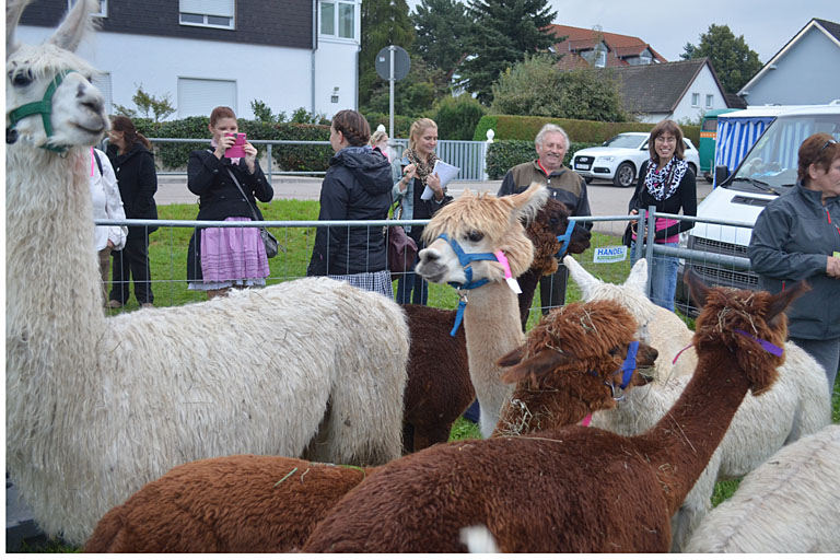 (ty) Heute ist auch schon wieder der letzte Tag des Barthelmarktes angebrochen. Bis heute Nacht darf noch auf den Bänken getanzt und die Tracht zur Schau getragen werden, bis wieder für ein Jahr Ruhe einkehrt in Oberstimm. Und traditionell findet an diesem letzte Tag ab sechs Uhr früh der Pferde- und Viehmarkt statt. Die ersten Tiere konnte man aber schon ab fünf Uhr morgens bestaunen. Besonders die Lamas mit ihrem flauschigen Fell und dem leicht verwirrten Blick hatten es den Besuchern angetan. Aber mit nach Hause nehmen ist ein nicht ganz billiges Vergnügen: Immerhin um die 2000 Euro kostet so ein Lama.
