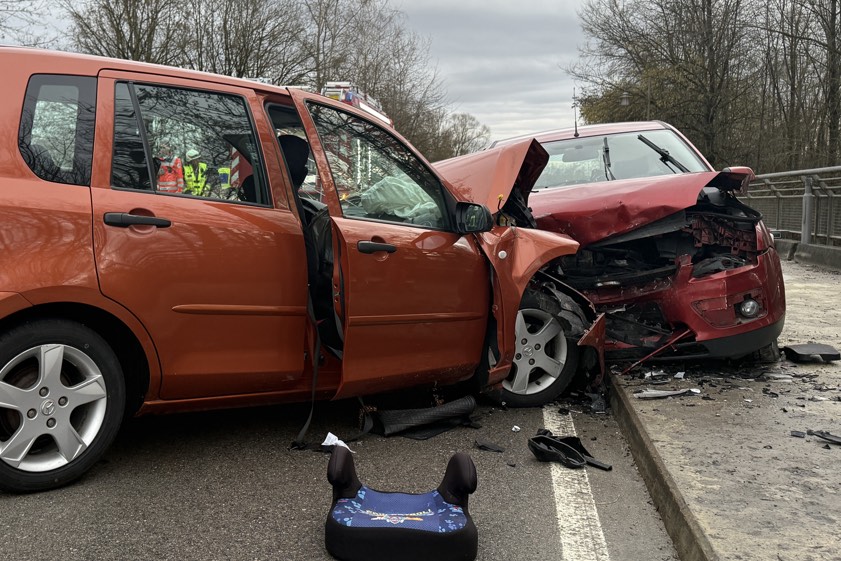 Der Crash-Verursacher erlitt laut Polizei leichte Verletzungen. Seine 67-jährige Ehefrau, die sich mit an Bord befunden hatte, sei schwer verletzt worden. Der 29-Jährige sowie zwei weitere Insassen dieses Autos – im Alter von 29 und 31 Jahren – trugen den Angaben zufolge jeweils leichte Verletzungen davon. Alle fünf Verunglückten wurden vom Rettungsdienst in ein Krankenhaus gebracht. Die Brücke war für rund zwei Stunden komplett gesperrt. Im Einsatz waren auch die Feuerwehren aus Vohburg und Dünzing. Streifenbeamten schätzten den an den zwei Pkw entstandenen Schaden auf insgesamt 50 000 Euro.