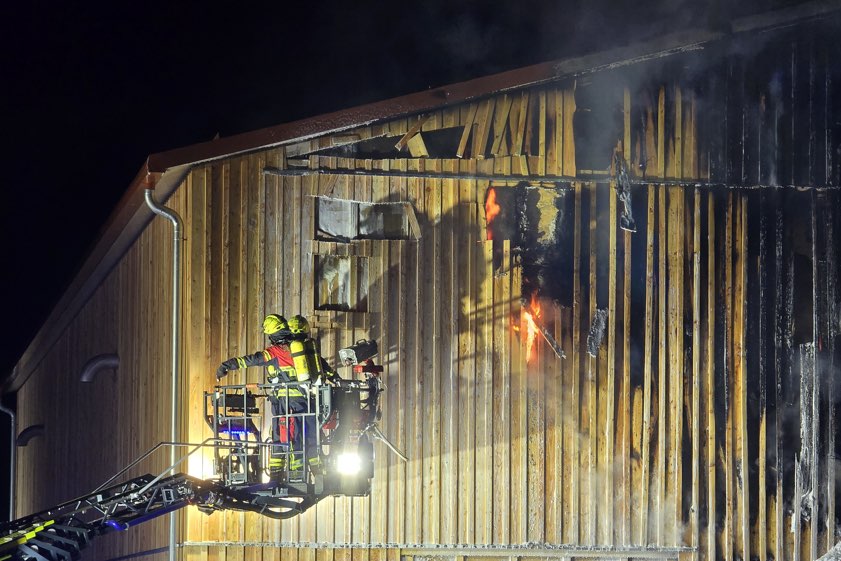 "Der Gebäude-Schaden beläuft sich ersten Schätzungen zufolge auf einen unteren sechsstelligen Euro-Betrag", teilte die Polizei in der Erstmeldung mit. In der Halle befanden sich den Angaben zufolge technische Gerätschaften sowie Materialien und Baustoffe, deren mögliche Beschädigungen derzeit noch nicht absehbar sind. Die ersten polizeilichen Maßnahmen wurden von Beamten der örtlichen Dienststelle getroffen. Die weiteren Ermittlungen führt die Kriminalpolizei-Inspektion aus Landshut. Weitere offizielle Informationen hat die Polizei bislang nicht veröffentlicht.
