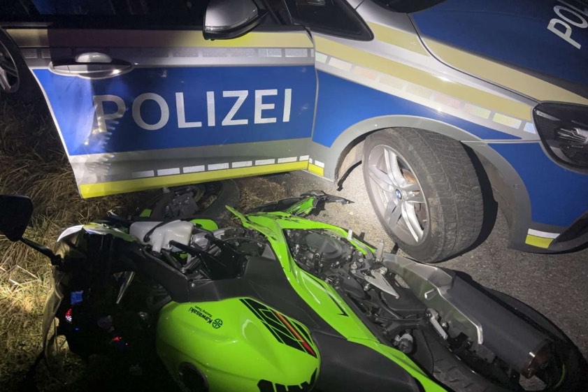 Bei der von dem 21-Jährigen gelenkten Maschine handelt es sich laut Mitteilung der Polizei um eine grüne Kawasaki mit einer Motorisierung von 48 PS. Weitere Einzelheiten dazu könnten derzeit "aus ermittlungstaktischen Gründen" nicht gemacht werden. Das Zweirad sei von den Beamten beschlagnahmt worden. Das in die Kollision verwickelte Polizeiauto sei nach dem Zusammenstoß nicht mehr fahrbereit gewesen. Der Sachschaden belaufe sich auf zirka 5000 Euro.