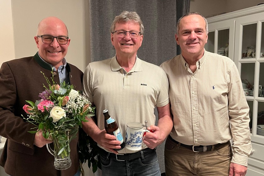 (ty) Der Unternehmer Josef Seizmeir (Foto, Mitte) aus Scheyern hat kürzlich seinen 60. Geburtstag gefeiert. Ehrenamtlich engagiert er sich Seizmeir als Zweiter Vorsitzender des Gewerbe-Verein von Scheyern sowie als Mitglied des Wirtschafts-Beirates des Landkreises Pfaffenhofen. Im Namen des Gewerbe-Verein Scheyern gratulierten dem Jubilar dessen Erster Vorsitzender Wolfgang Inderwies (links) sowie Kassier Stefan Koller (rechts).