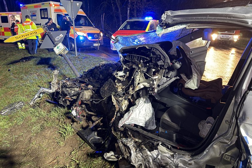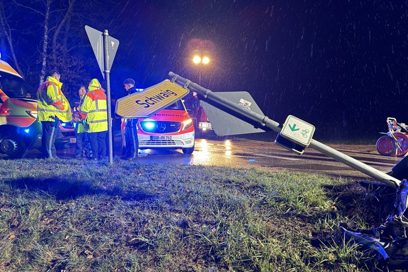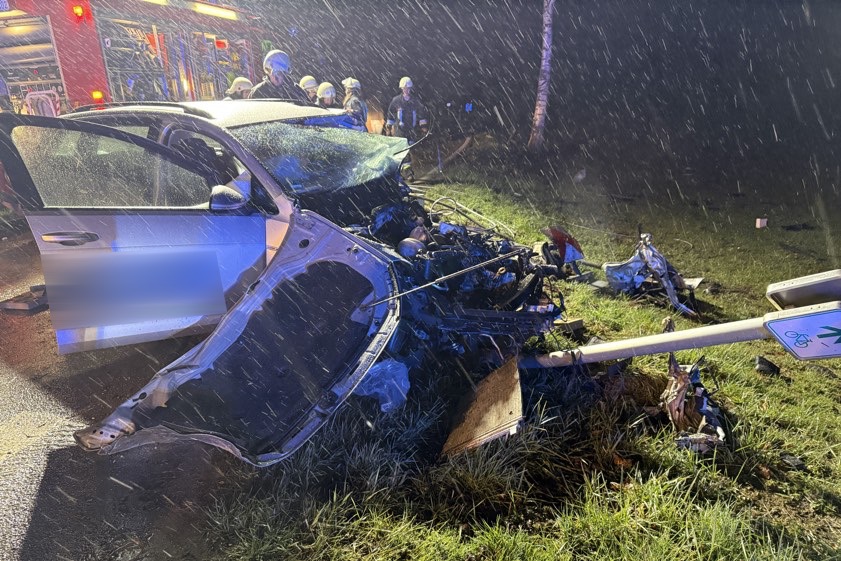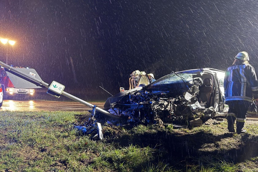 Der Mann kam am späten gestrigen Abend von der Kreisstraße PAF13 ab: Der Wagen kollidierte mit einem Baum und mehreren Verkehrszeichen.