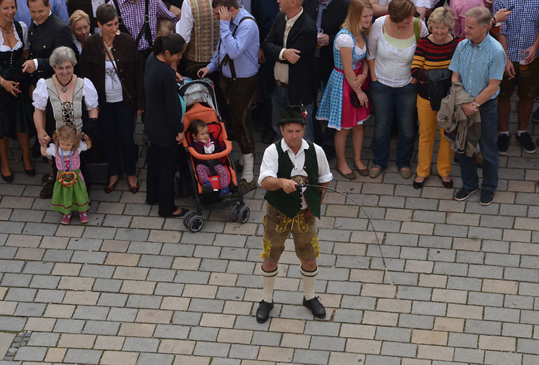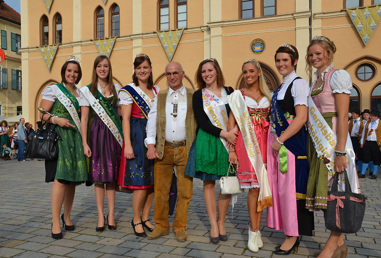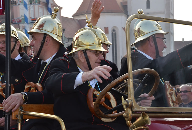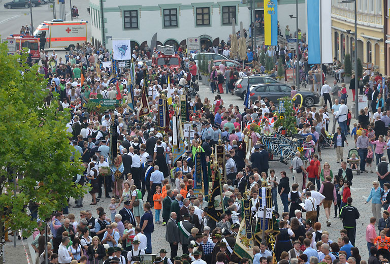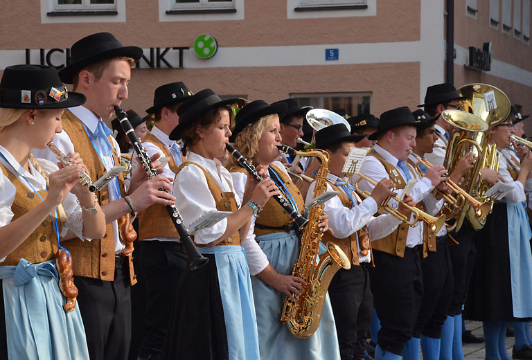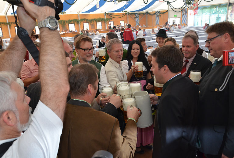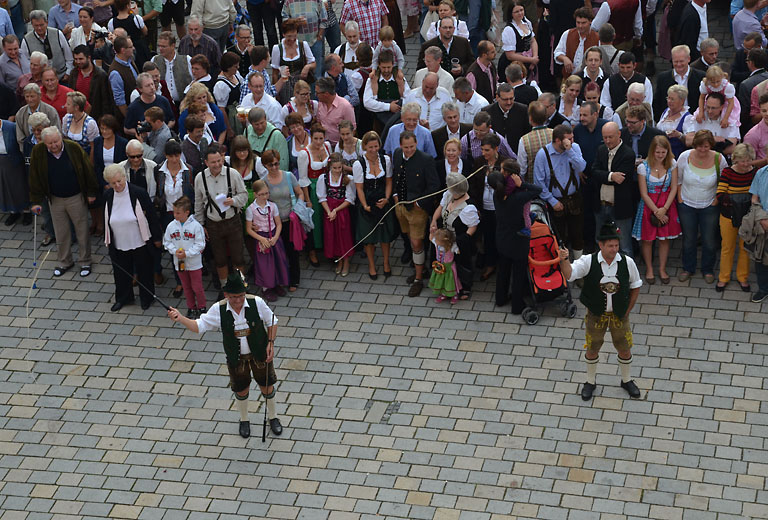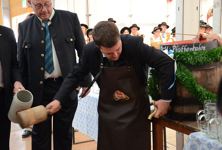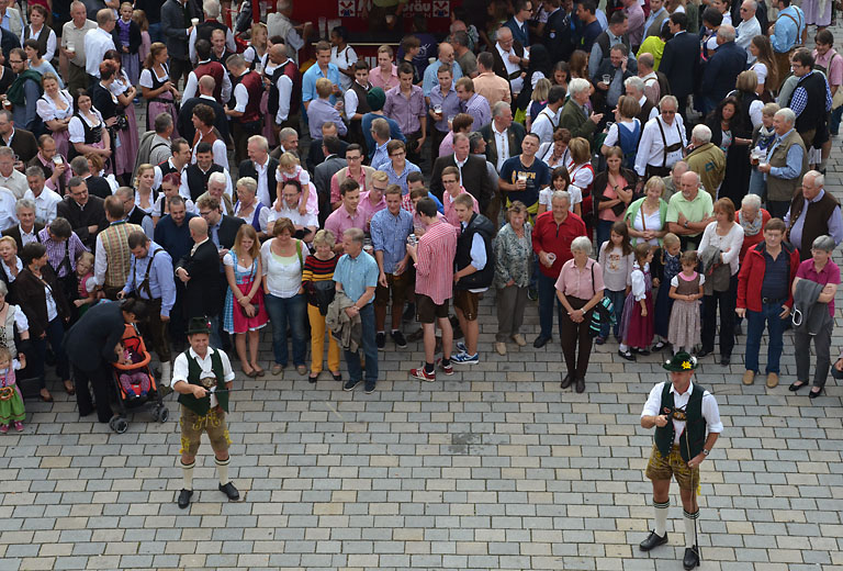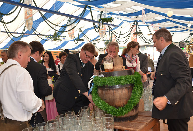 (zel) Das Pfaffenhofener Volksfest 2014 ist eröffnet! Mit dem traditionellen Standkonzert auf dem Hauptplatz stimmten sich die Besucher ab etwa 17 Uhr ein und auch die Goaßlschnalzer ließen es krachen, ehe sich dann gegen 17.30 Uhr ein famoser Umzug durch die Stadt, auf den Festplatz und ins große Zelt schob. Mit dabei waren unzählige Vereine mit zum Teil bemerkenswert großen Abordnungen, mehrere Musikkapellen und reichlich Prominenz aus Bereichen des öffentlichen Lebens sowie eine Bierkutsche und das historische Fahrzeug der hiesigen Feuerwehr. Der bunte Festzug war so lang, dass sich nach dem Anzapfen durch Bürgermeister Thomas Herker (SPD) – es hat kein bisserl gespritzt – so mancher wohl schon die zweite Maß bestellt hat, während die letzten Gruppen erst noch auf dem Festplatz einzogen.