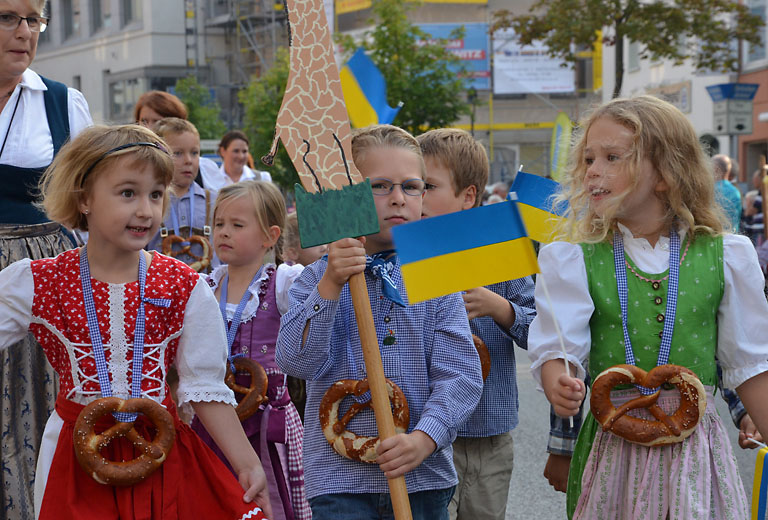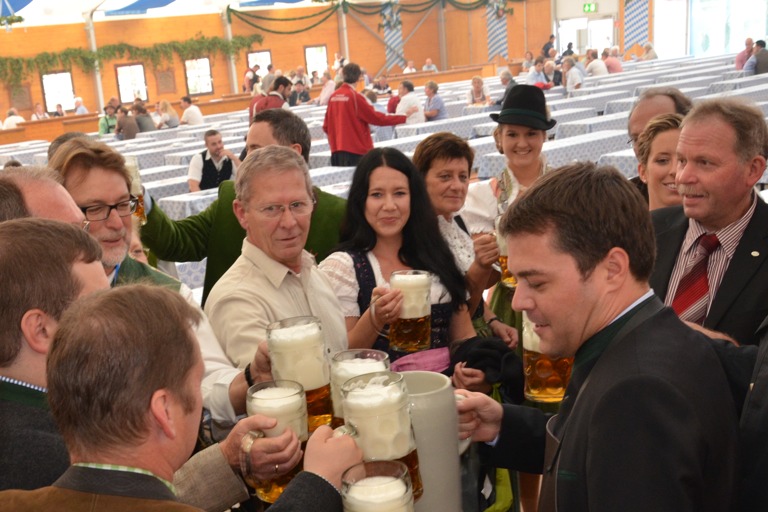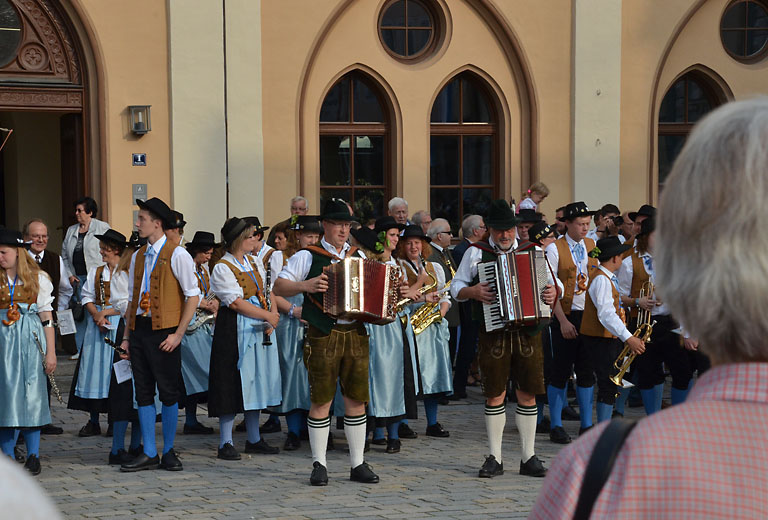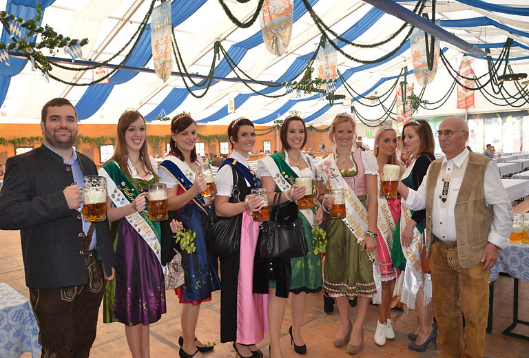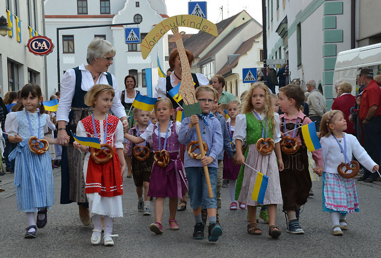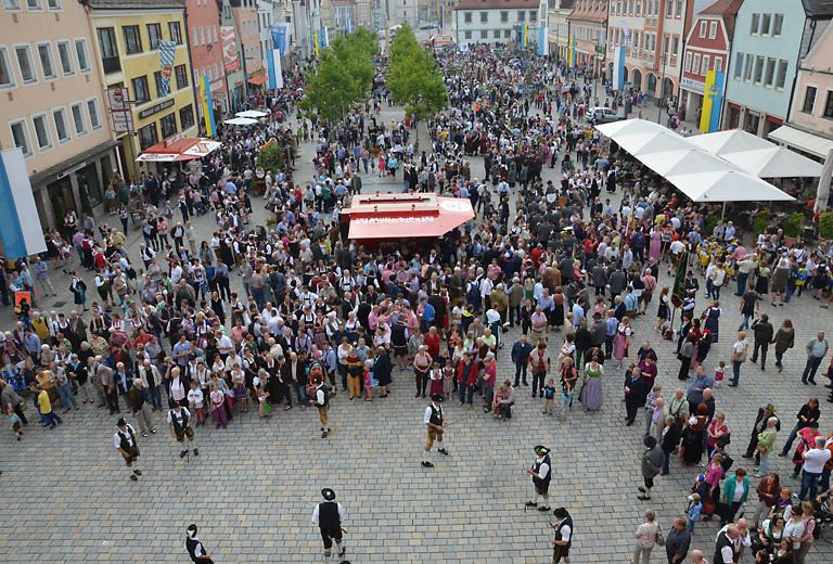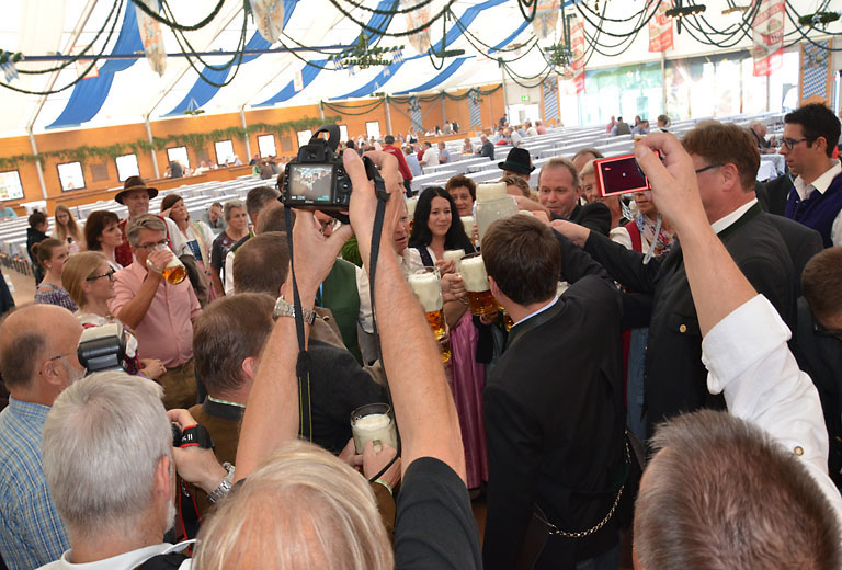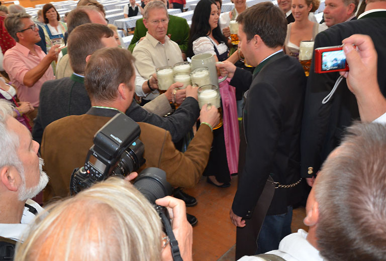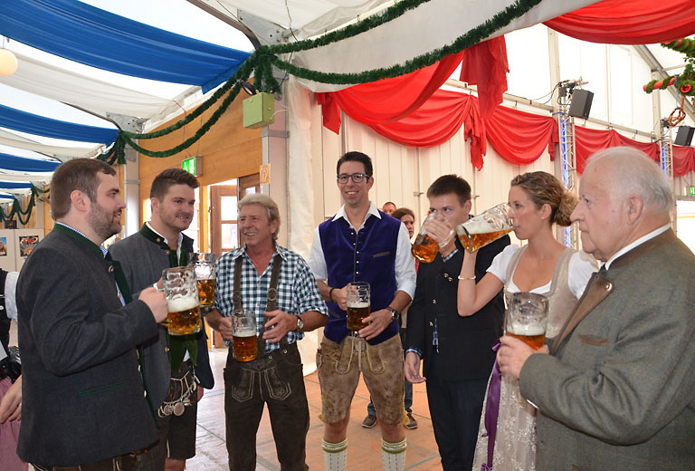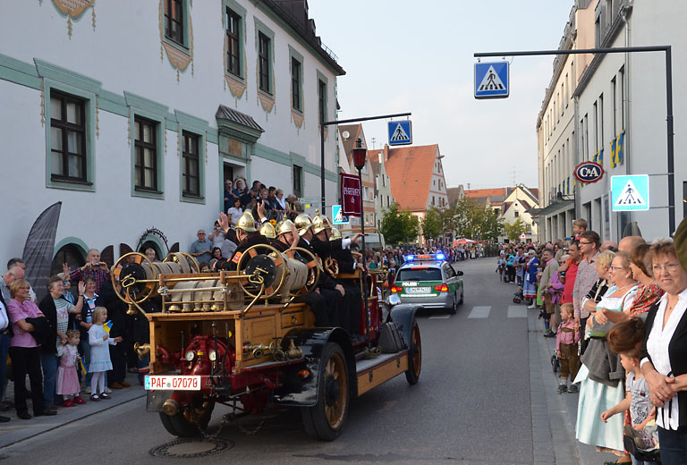 (zel) Das Pfaffenhofener Volksfest 2014 ist eröffnet! Mit dem traditionellen Standkonzert auf dem Hauptplatz stimmten sich die Besucher ab etwa 17 Uhr ein und auch die Goaßlschnalzer ließen es krachen, ehe sich dann gegen 17.30 Uhr ein famoser Umzug durch die Stadt, auf den Festplatz und ins große Zelt schob. Mit dabei waren unzählige Vereine mit zum Teil bemerkenswert großen Abordnungen, mehrere Musikkapellen und reichlich Prominenz aus Bereichen des öffentlichen Lebens sowie eine Bierkutsche und das historische Fahrzeug der hiesigen Feuerwehr. Der bunte Festzug war so lang, dass sich nach dem Anzapfen durch Bürgermeister Thomas Herker (SPD) – es hat kein bisserl gespritzt – so mancher wohl schon die zweite Maß bestellt hat, während die letzten Gruppen erst noch auf dem Festplatz einzogen.