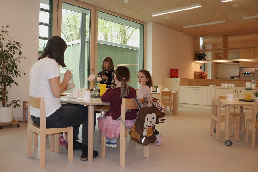 Schon im Eingangs-Bereich erhalten die Buben und Mädchen den Angaben zufolge bei ihrer Ankunft eine Übersicht darüber, welche Betreuerinnen in den einzelnen "Werkstätten" tätig sind. So könnten sie selbst entscheiden, worauf sie gerade Lust hätten: "kreativ sein im Atelier beim Basteln und Malen, bauen in der Baustelle, Neues entdecken in der Wissens-Werkstatt oder in der Erlebniswelt in verschiedene Rollen schlüpfen". Nach und nach werden laut heutiger Mitteilung weitere Räume wie die Erzähl-Werkstatt, die Holz-Werkstatt, der Bereich für Brettspiele oder der Bewegungsraum geöffnet.