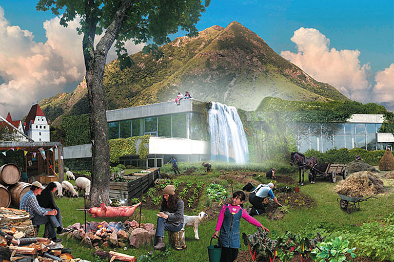 „Die Menschen starten im Klenzepark und beschreiten dann ihren Weg ins Offene, also in neue Welten“, erklärt Julia Hanslmeier, die Pressesprecherin des Theaters. Sowohl reale als auch fiktive Welten – wie zum Beispiel das Schlaraffenland – erwarten den Besucher auf seinem Spaziergang. Der Weg führt über den Donausteg, am Donauufer entlang zur Schlosslände Richtung Theater. Schauspieler begleiten den Marsch, der auf dem Theatervorplatz endet, der sich dann als eine idyllische Oase mit Wasserfall präsentieren wird. "Die Donau wird zu einem Teil der Stadtlandschaft und der Theatervorplatz wird in einen zauberhaften Ort verwandelt, an dem fremdartige Geschichten erzählt, fremdartige Klänge zu hören sein werden. Wo Natur und Zivilisation eine neue Symbiose eingehen, wo gegessen, getrunken, getanzt und geredet wird.", so Hanslmeier.