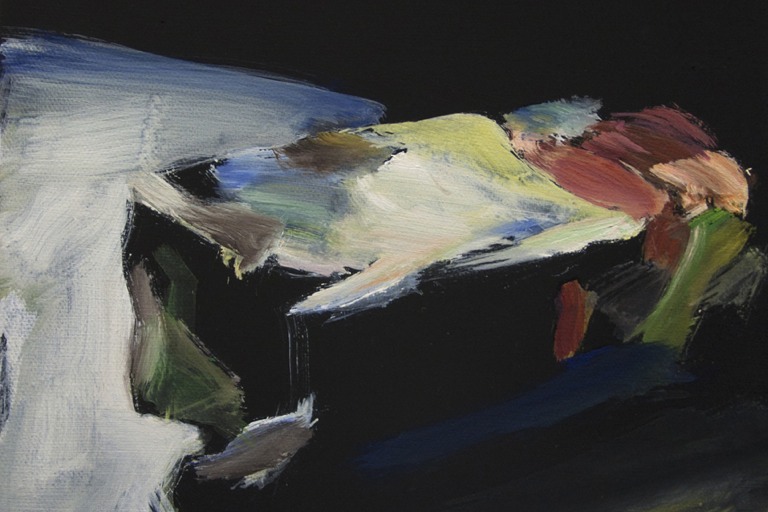 Was der Betrachter sieht, ist die malerische Interpretation von Dingen. Gegenstände, ein Glas mit Malmittel oder ein Buch, das zufällig im Atelier lag, die als „pars pro toto“ stellvertretend für die Phänomenologie der Wirklichkeit in dem bestimmten Moment der Beobachtung stehen. Unterstützt wird die Aussage durch den Malprozess: ein schneller, gestischer Duktus symbolisiert die Zeitlichkeit der Malerei.