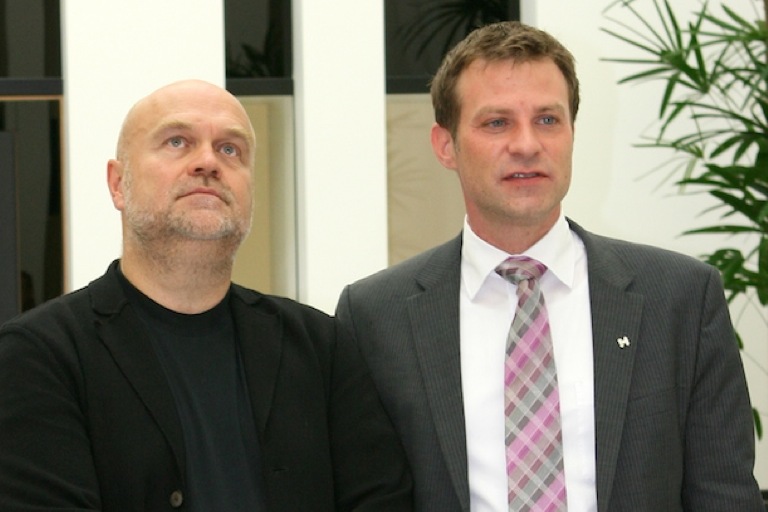 Bei der offiziellen Eröffnung von Haus B: der Geschäftsführer der Schloss Hohenkammer GmbH, Martin Kirsch (rechts), und Architekt Peter Brückner.